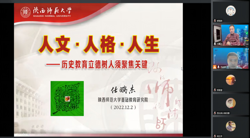 2022年12月2日19:00,应公司邀请,陕西师范大学基础教育研究院执行经理、《中学历史教学参考》主编任鹏杰老师在线为公司师生作了题为“人文·人格·人生:历史教育立德树人须聚焦关键”的学术报告。此次报告由gg999策略手机白菜历史教育研究所(教研室)所长苏向荣副教授主持,来自gg999策略手机白菜和历史文化公司的50余名员工聆听了报告。