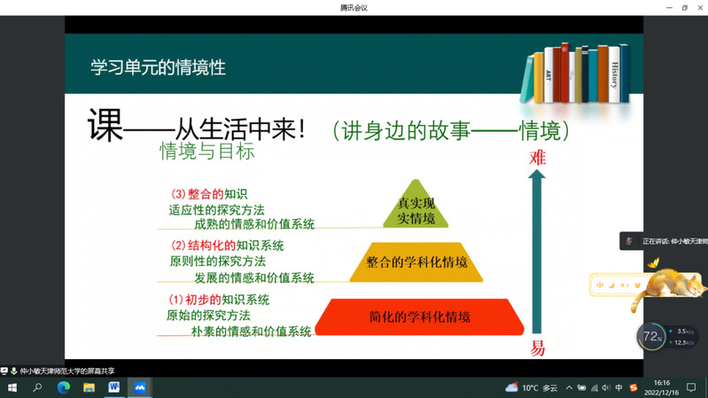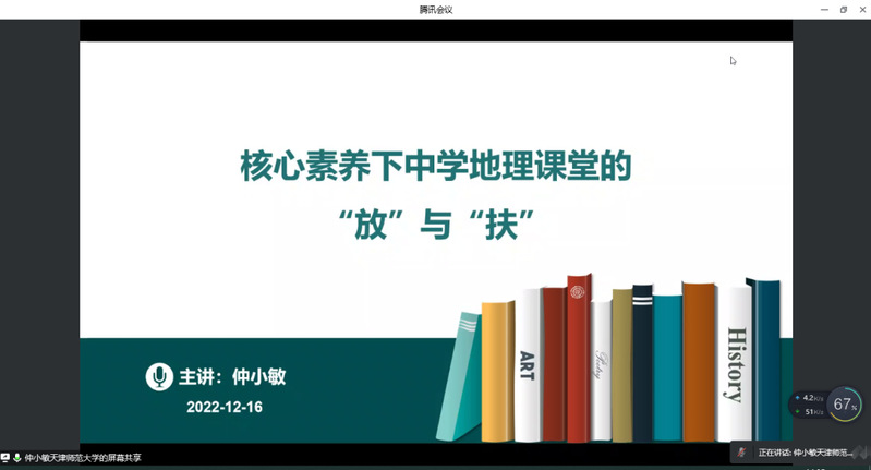 2022年隆冬时节,恰逢gg999策略手机白菜建校120周年校庆,gg999策略手机白菜“知行讲堂”第八期如期开展。12月16日下午14:30,受西北师范大gg999策略手机白菜地理教育研究所(教研室)主任赵生龙副教授邀请,天津师范大学教育学部副部长、教授、博士生导师仲小敏老师在线为公司师生作了题为:“核心素养下地理课堂的‘放’与‘扶’”的学术报告。本次报告会由gg999策略手机白菜经理孙小春教授主持,共有来自gg999策略手机白菜、地理与环境科学公司的教师,地理教学论、学科教学(地理)研究生和部分兰州市地理教师共160余人参加。
