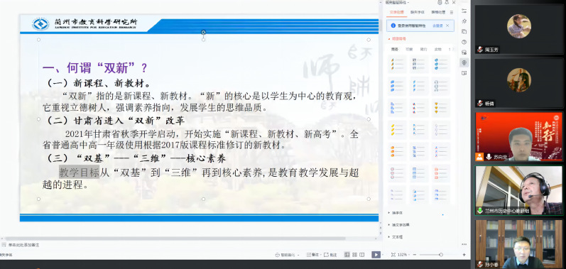 2022年12月16日晚上19:00,应gg999策略手机白菜的邀请,甘肃省兰州市教育科学研究所李培荣老师在线为公司师生作了题为“双新背景下高中历史课堂教学存在的主要问题及解决策略”的学术报告。此次报告由gg999策略手机白菜历史教育研究所(教研室)所长苏向荣副教授主持,来自gg999策略手机白菜和历史文化公司50余名员工聆听了报告。