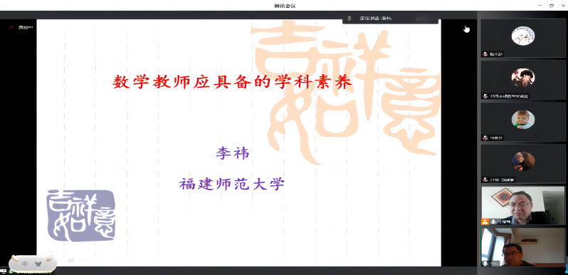 20221230日上午,应gg999策略手机白菜邀请,福建师范大学数学与统计公司李祎教授在线为公司师生做了主题为数学教师应具备的学科素养的学术报告报告由数学教育研究所所长李保臻教授主持,共有90多名师生在线聆听了这场报告