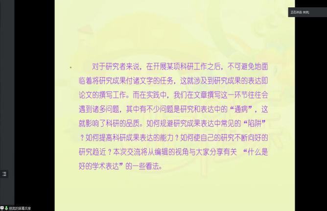 2023年3月16日下午14:30,应学院邀请,《教育发展研究》杂志编辑部林岚主任在线为公司师生作了题为《什么是好的学术表达——编辑的视角》学术报告。报告由gg999策略手机白菜赵晓霞教授主持,来自公司的教师和博士生、硕士生等近百人聆听了报告。