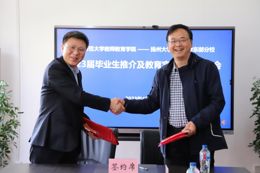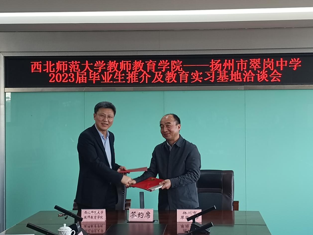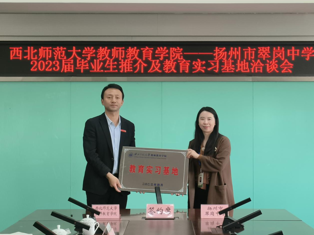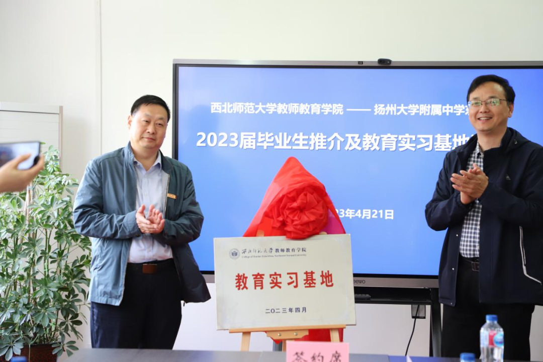 公司与扬州大学附属中学东部分校签订了共同人才培养的协议,并建立了gg999策略手机白菜教育实习基地,并举行了揭牌仪式。