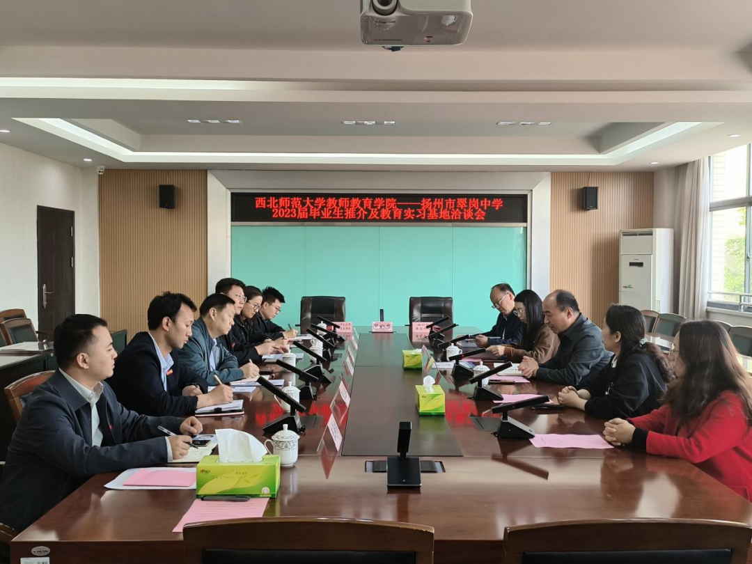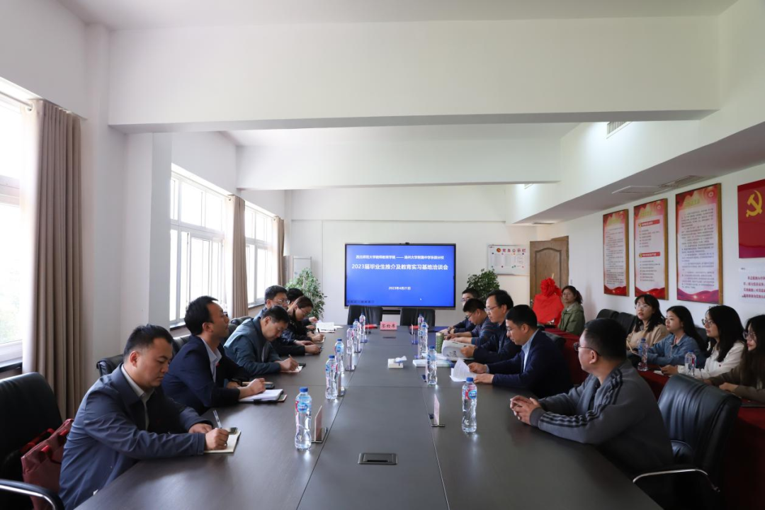 gg999策略手机白菜赴扬州大学附属中学东部分校进行调研和“访企拓岗”暨“宏志助航计划”毕业生推介工作。扬州大学附属中学东部分校董事长束玉良,副董事长张晶及部门负责人出席了会议。