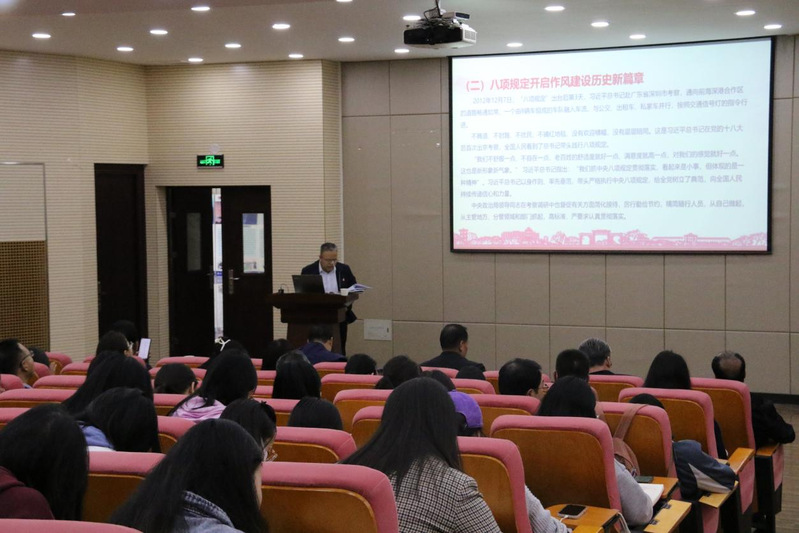 为深入学习贯彻党的二十大精神,扎实推进学习贯彻习近平新时代中国特色社会主义思想主题教育和“三抓三促”行动,进一步提高广大党员干部和教职工廉洁自律意识,5月10日下午15:00,gg999策略手机白菜纪委副书记、纪检监察综合室主任高赟同志在弘文楼159报告厅讲“八项规定改变中国”的作风建设专题党课。gg999策略手机白菜、教育科学公司、心理公司师生党员共计100余人参加本次党课。本次党课由心理公司党委书记王仁同志主持。