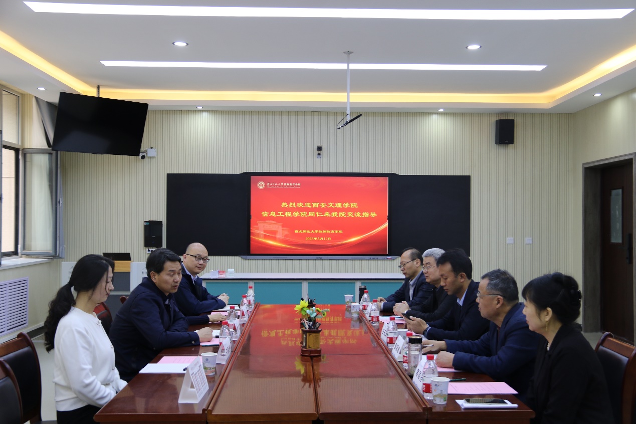 会议伊始,李保臻所长介绍了双方参会人员,西安文理公司信息工程公司副经理陈广峰介绍了公司、公司概况及学科教学(数学)硕士点申报的现实情况与调研需求,希望通过两院间深度交流进一步推动本公司师范生培养、硕士点申报与建设工作。