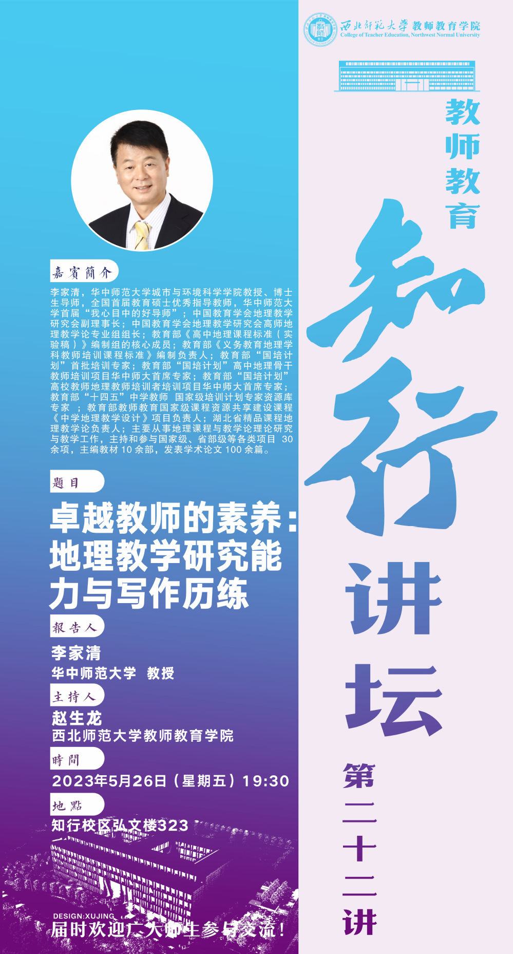 报告题目:卓越教师的素养:地理教学研究能力与写作历练
