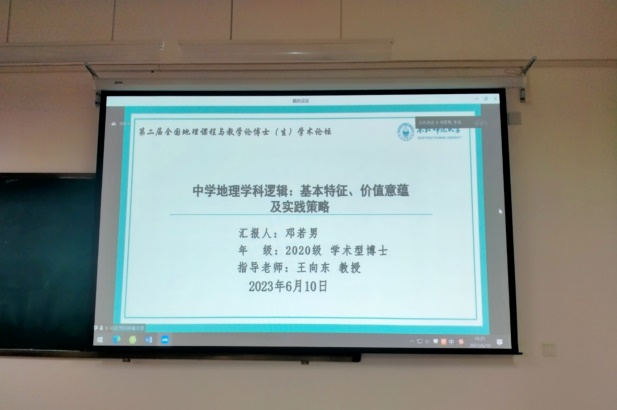 第二阶段:博士生平行论坛。本次学术论坛的博士生论坛分为三个不同的主题,分别在三个会场进行。第一分论坛主题为“地理课程与教学的理论探索”,由人民教育出版社编审李洁主持,来自东北师范大学、华中师范大学等高校的六位博士生汇报,李家清教授、仲小敏教授、林培英教授点评。第二分论坛的主题为“地理课程与教学的实践研究”,由陕西师范大学户清丽教授主持,来自天津师范大学、云南师范大学等高校的五位博士生汇报,夏志芳教授、陈实教授点评。第三分论坛的主题为“地理课程思政、教材与测量评价研究”,由安徽师范大学教授刘学梅主持,gg999策略手机白菜、云南师范大学等高校的五位博士生汇报,张建珍教授、赵媛教授、高俊昌编审点评。为高效的参与论坛,我们在教室里集中播放了第二分论坛的汇报,其余同学自行观看自己感兴趣的会场。