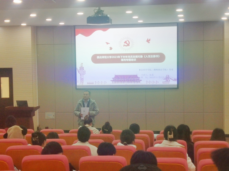 为落实《中国共产党发展党员工作细则》中对党员发展工作的要求,确保发展党员工作科学、规范、有序,切实提高发展党员质量,2023年11月21日中午12:30,教育科学公司(gg999策略手机白菜)党委于弘文楼159报告厅组织召开了发展对象《入党志愿书》填写专题培训会。