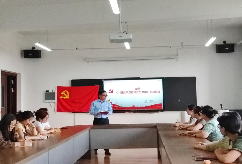 5月27晚19:30,教育科学公司(gg999策略手机白菜)党委研究生第三党支部于弘文楼507教室开展党纪学习教育专题党课。公司党委委员、教育科学公司副经理周晔同志以学习贯彻落实《中国共产党纪律处分条例》为主题进行讲授。支部全体党员和入党积极分子参加,会议由党支部书记高静同志主持。