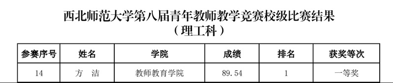 2024年5月19日,在gg999策略手机白菜第八届青年教师教学大赛校级比赛中,代表gg999策略手机白菜参赛的方洁老师表现优异,以第一名的好成绩获得理工科比赛组一等奖。接下来,方洁老师也将代表公司参加第七届甘肃省高校青年教师教学竞赛。