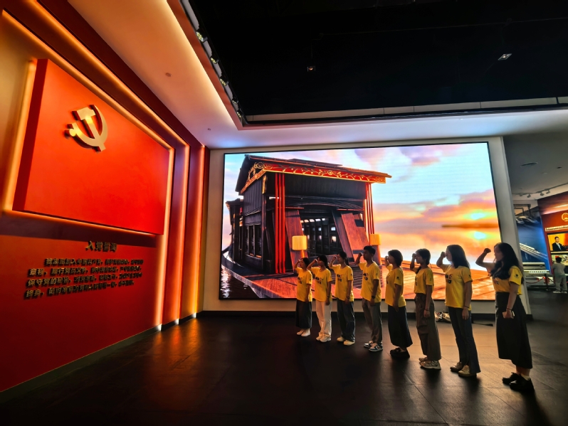 4:“护航青年梦·择业新未来”社会实践队临时党支部党员参观南湖革命纪念馆 (拍摄:郑善婧)