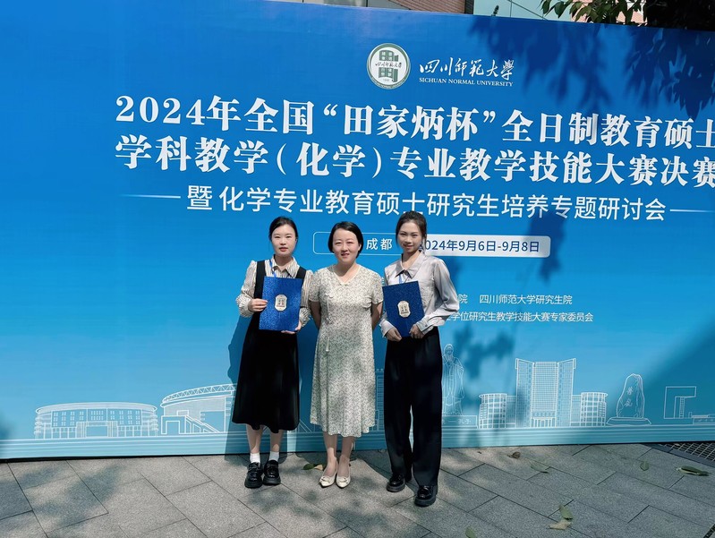 96日至8日,2024年全国“田家炳杯”全日制教育硕士专业学位研究生学科教学(化学)专业教学技能大赛决赛暨化学教育专业硕士公司产品专题研讨会在四川师范大学举办。本次大赛由“田家炳杯”全日制教育硕士专业学位研究生教学技能大赛专家委员会指导,田家炳基金会冠名,四川师范大学主办。来自北京师范大学、华东师范大学、东北师范大学等全国87所院校的405名选手参加了初赛,经专家评审,共198名选手进入决赛。决赛采用现场抽题,限时备课进行当场演讲和模拟授课,并且即时评分。经过激烈角逐,公司2022级研究生刘璐同学和张银洁同学荣获三等奖。