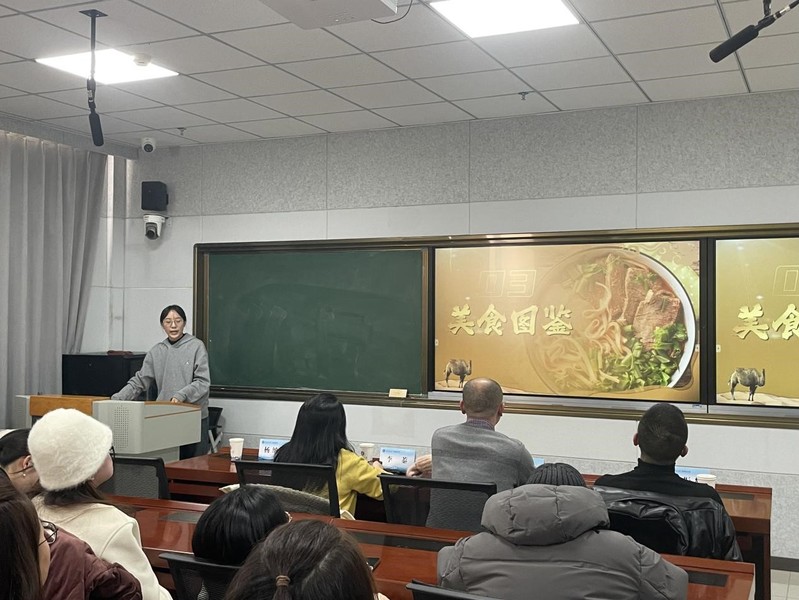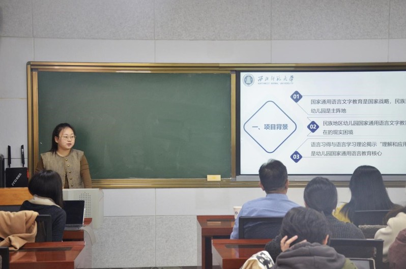 本次交流活动中,两校师生展开深入探讨。首先,来自西北师大语文课程与教学论专业的研究生李晨作了题为《以声韵解读古典诗歌》的主旨发言。从以声韵解读古典诗歌的原因、途径和教学启示等方面分享自己的理解与经验。其次,来自西北师大学前教育专业的研究生张佳敏作了题为《理解—应用:双轮驱动的藏族地区幼儿园国家通用语言教育模式的建构与探索》的发言,介绍了龙红芝教授团队近年来开展藏区国家通用语言教育研究的成果。