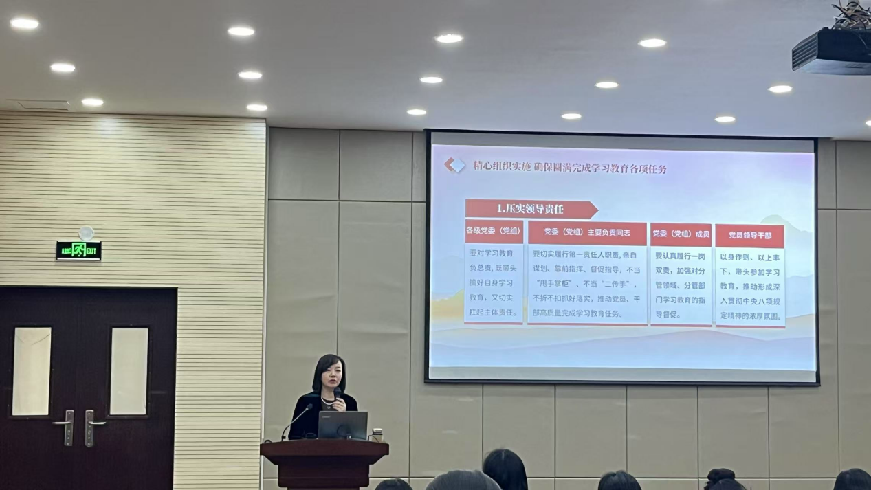 4月10日下午,教育科学公司(教育教师公司)党委开展深入贯彻中央八项规定精神学习教育集体学习暨党委书记讲党课,公司党委委员、各党支部全体师生党员200余人积极参会学习,会议由公司党委书记苏丽蓉同志主持。