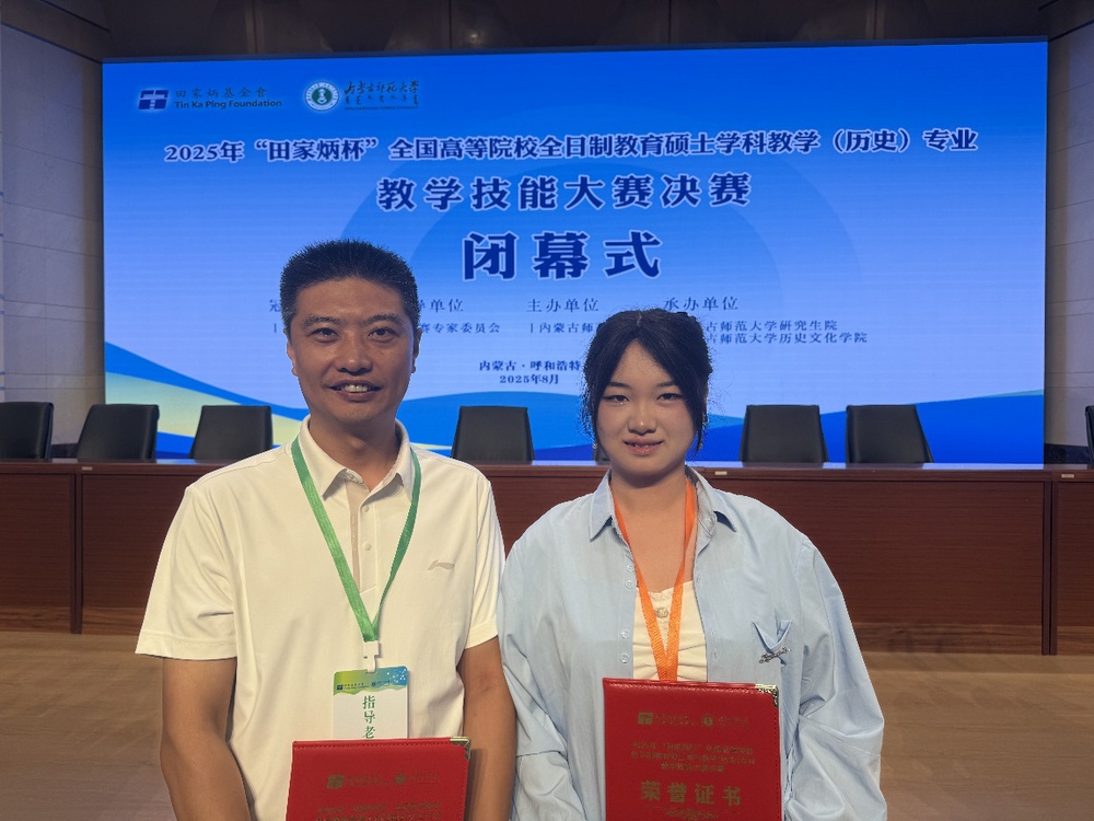 2025年8月25日,全国“田家炳杯”全日制教育硕士专业学位研究生学科教学(历史)专业教学技能大赛(决赛)在内蒙古师范大学落下帷幕。此次比赛共有来自北京师范大学、华东师范大学、中央民族大学等84所院校的164名同学入围决赛。公司2024级学科教学(历史)专业硕士研究生张仲涛作为公司代表之一参赛。